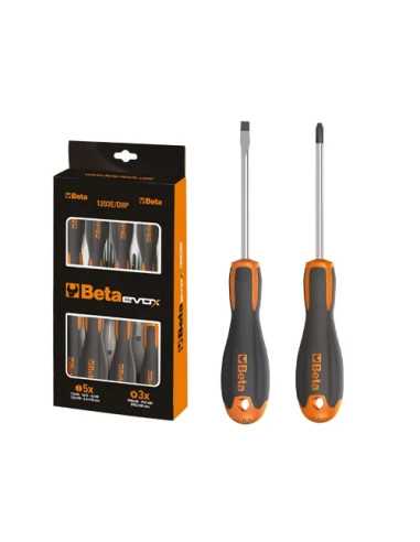 Serie Giraviti Beta Evox è una serie di 8 giraviti di alta qualità, ideali per qualsiasi tipo di lavoro. Include diversi formati per adattarsi a varie esigenze, sia per viti a testa con intaglio che per viti a testa con impronta a croce.