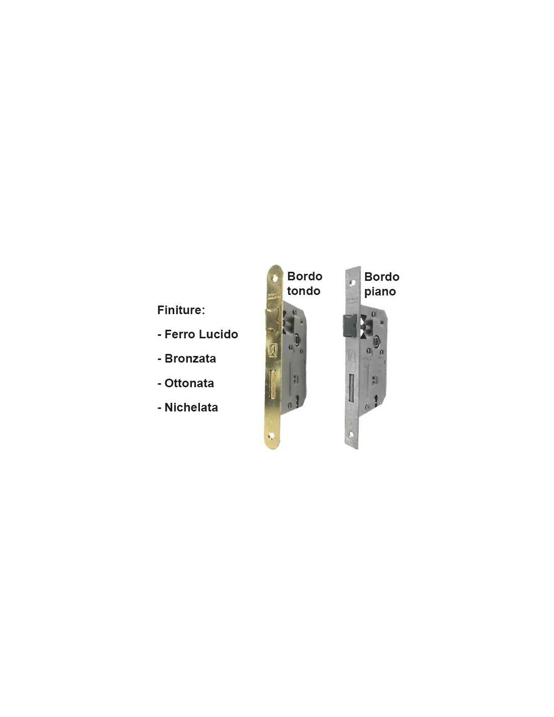 Serrature da infilare Patent in acciaio, con scatola chiusa e scrocco pieno rivoltabile, piastra e contropiastra rettangolari. Altezza scatola 170 mm, distanza fori 70 mm. Contropiastre disponibili su richiesta.