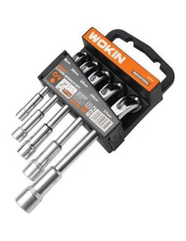Set di chiavi a pipa di alta qualità della marca WOKIN, realizzate in acciaio al cromo vanadio cromato e satinato. Questo set include chiavi di diverse dimensioni, da 8 a 17 mm, e viene fornito in un pratico contenitore di plastica per una facile conservazione e trasporto.