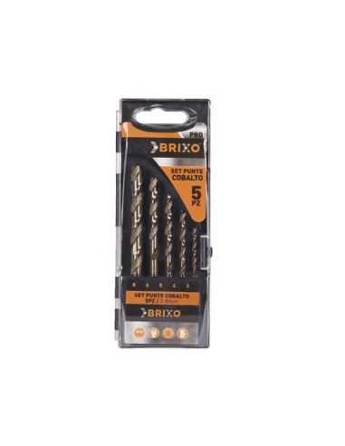 Set punte Brixo HSS Cobalto 5 pezzi, ideali per lavorare su acciai legati, metallo e ghisa. Dotate di diametri variabili (3-4-5-6-8 mm) per adattarsi a diverse esigenze di lavoro. Conforme allo standard DIN338.