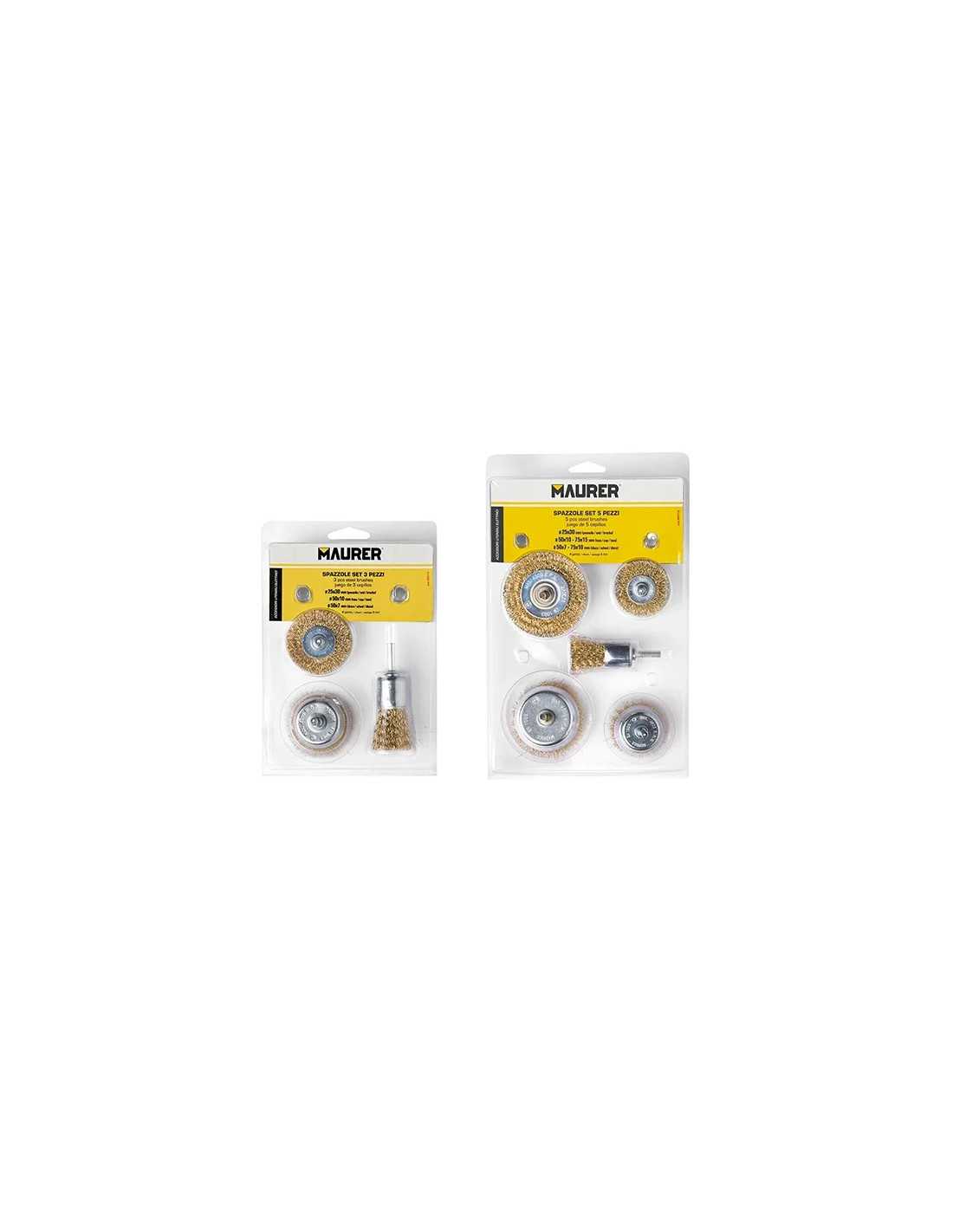 Set di spazzole in acciaio Maurer ideale per una pulizia accurata e professionale. Il set include una spazzola pennello, una spazzola tazza e una spazzola disco, perfette per varie esigenze di pulizia. Realizzate con materiali di alta qualità per garantire prestazioni eccellenti.
