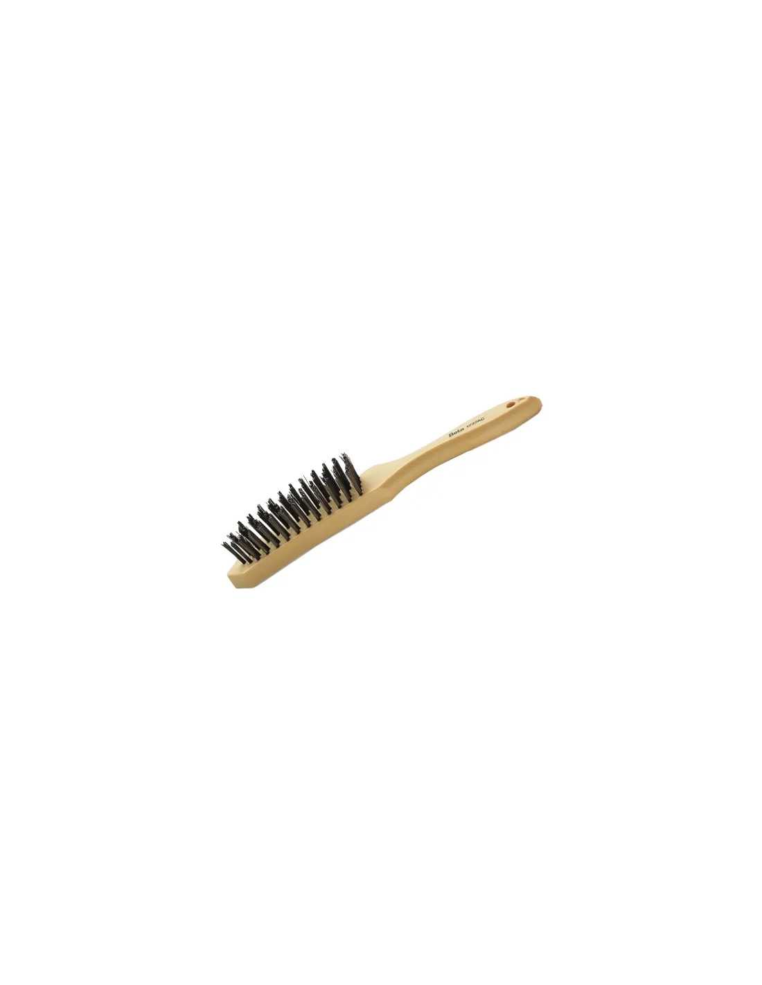 Spazzole Acciaio: spazzole ancora in fili di acciaio con manico, ideali per pulizie resistenti e pesanti. Con 4 ranghi e manico legno leggermente curvo per una presa comoda e sicura.