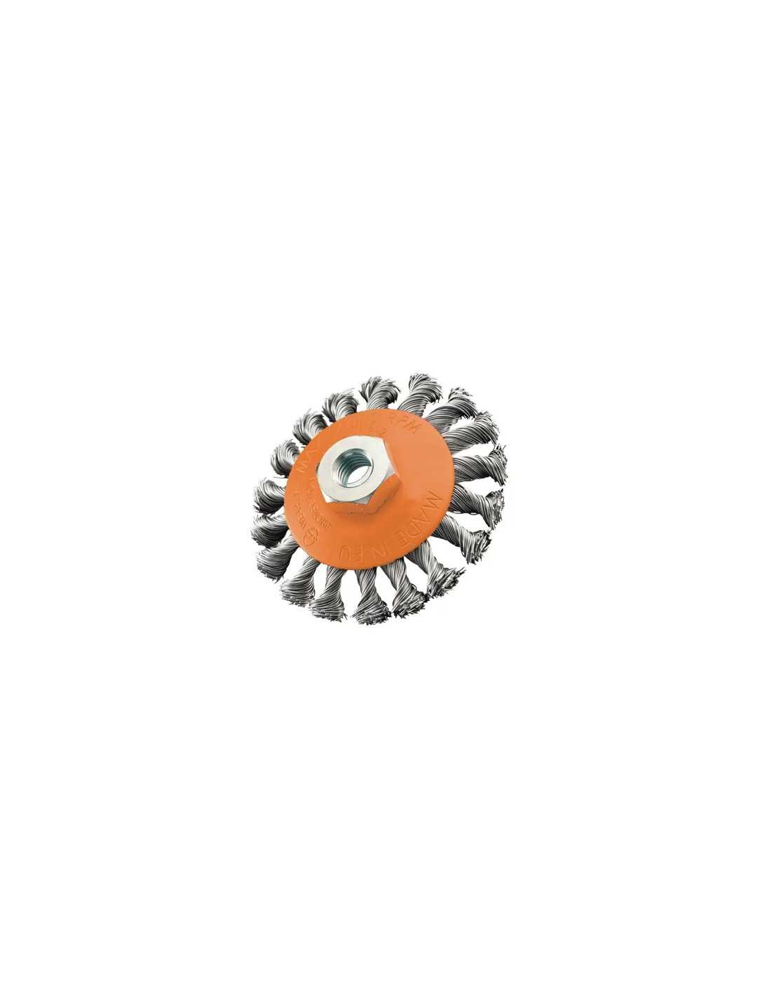 Spazzole Brixo Coniche Mazzetti Ritorti sono l'accessorio ideale per pulire, satinare, sbavare, rimuovere ruggine e scorie, sverniciare. Realizzate in acciaio di alta qualità, con fili resistenti di diametro 0.50 mm, garantiscono prestazioni ottimali. L'attacco M14 e la massima velocità di 14000 Rpm le rendono versatili e adatte a molteplici utilizzi.