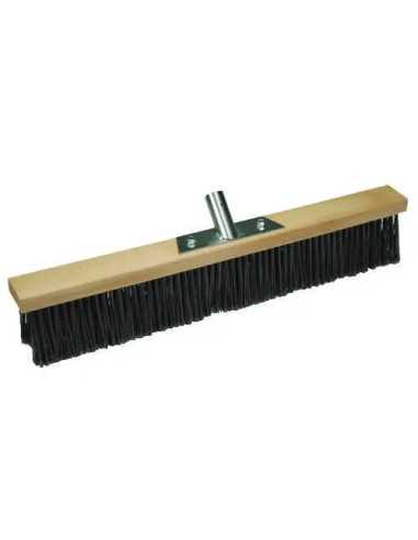 Spazzoloni industriali con zoccolo in legno, setole in PVC nere e occhio in acciaio zincato, ideali per la pulizia in ambienti industriali.