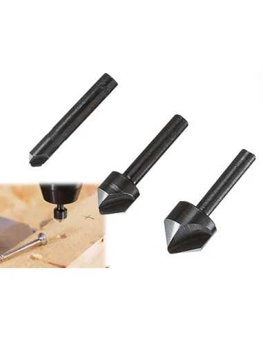 I nuovi svasatori SVASATORI sono l'alleato perfetto per ogni lavoratore che necessita di effettuare fori precisi e puliti su diversi materiali. Realizzati in resistente acciaio cromo vanadio, questi svasatori sono dotati di un codolo da 6 mm e presentano tre diverse dimensioni di taglio: 6 mm, 12 mm e 16 mm, con angolo di 45°.