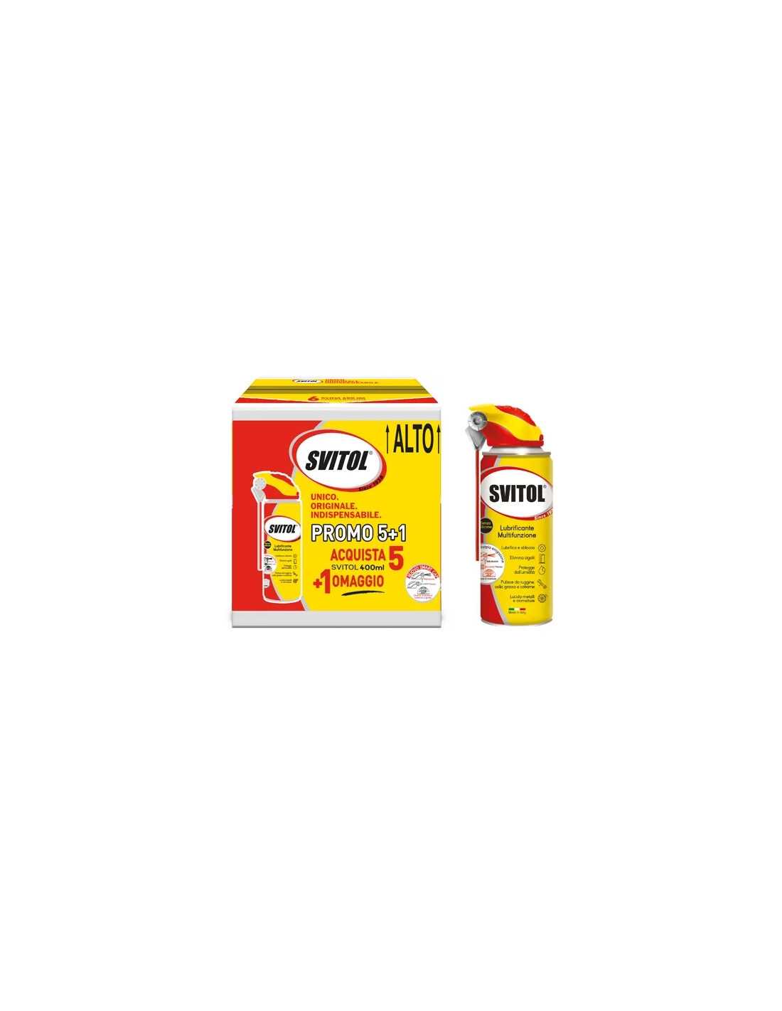 Il prodotto SVITOL ML.400 CF.5+1 OMAGGIO è un potente sbloccante lubrificante istantaneo progettato per viti, dadi e accoppiamenti meccanici bloccati da ossido, ruggine, incrostazioni, vernice e gomma. La confezione include 5 pezzi standard più 1 pezzo omaggio, offrendo un ottimo rapporto qualità-prezzo.