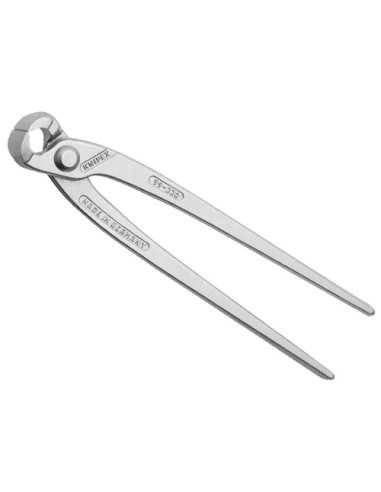 Tenaglie per carpentiere nichelate Knipex 9904, realizzate in acciaio bonificato e forgiato con taglienti temperati ad olio. Finitura zincata lucida per una maggiore durata nel tempo. Ideali per lavori di precisione e resistenza.