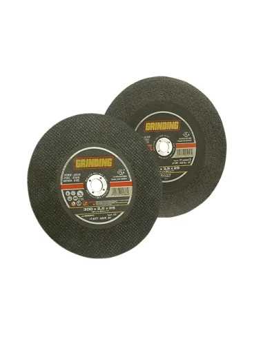 Dischi Grinding ferro per troncatrici 300 mm. Disco da taglio a centro piano per troncatrici fisse, con abrasivo all’ossido di alluminio e struttura con reti di rinforzo. Ideale per ferro e acciaio ad alta resistenza.