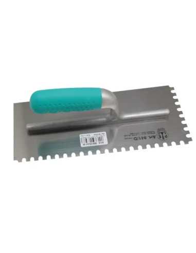 Frattazzi USA Dentati 841D DX è una lama in acciaio al carbonio con piolini saldati per l’ancoraggio dell’impugnatura in alluminio, che garantisce una presa salda e confortevole grazie al manico in gomma. Con uno spessore della lama di 0,6 mm, questo prodotto è ideale per svolgere lavori di precisione con facilità e sicurezza.
