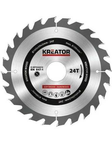 Lama circolare x legno Kreator con dentatura alternata in metallo duro (widia), ideale per tagli longitudinale e trasversale nel legno e derivati come agglomerati e stratificati. Adatta per seghe circolari da banco e troncatrici.