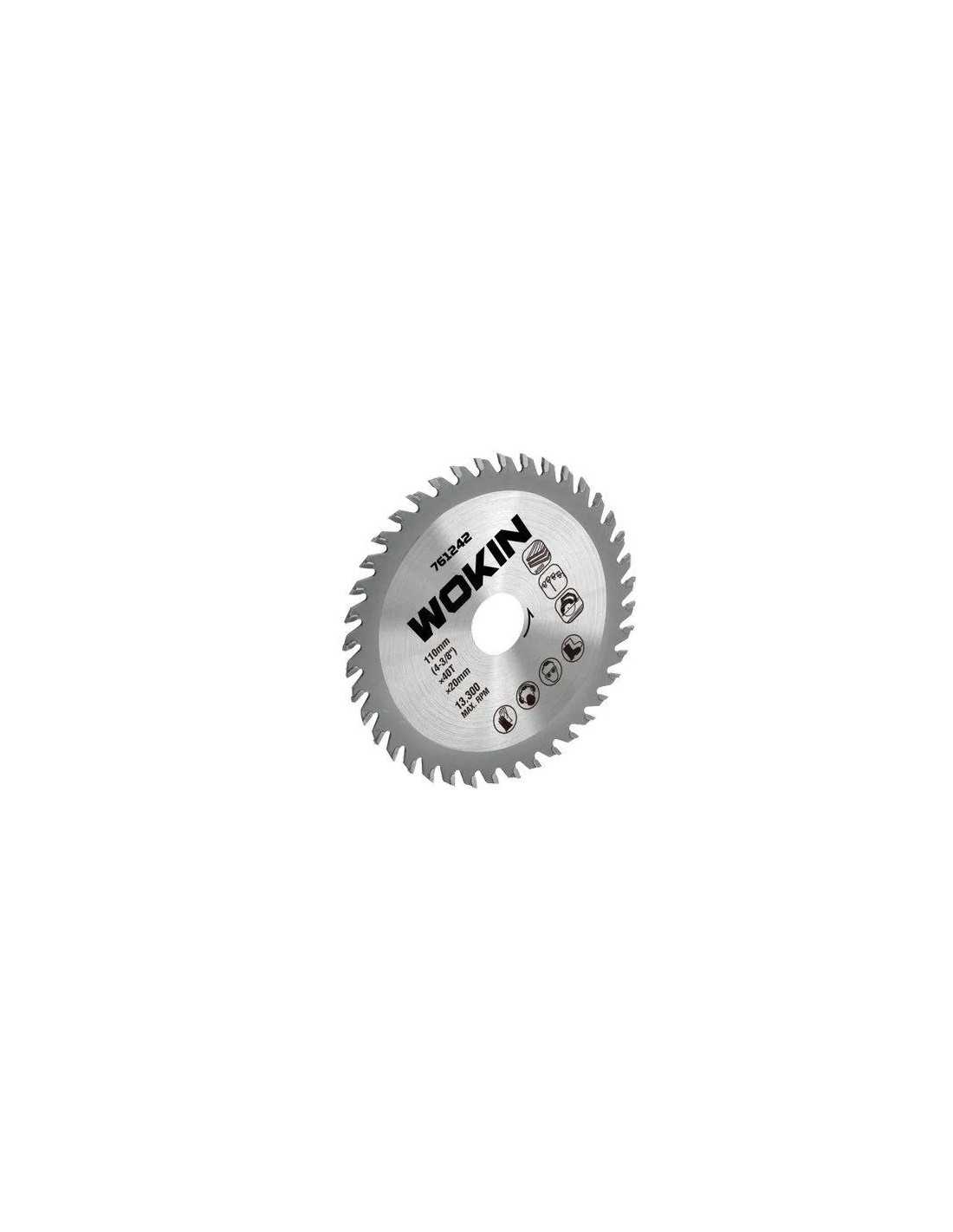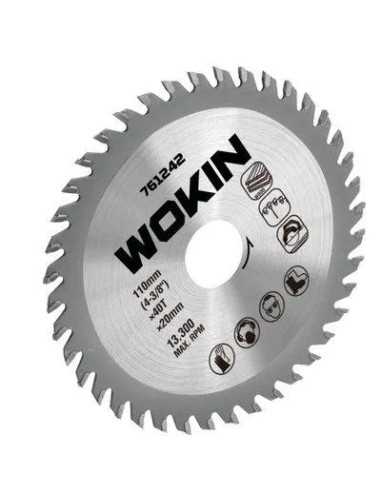 Lama circolare per legno della marca WOKIN, con denti in metallo duro al widia, ideale per il taglio preciso del legno.