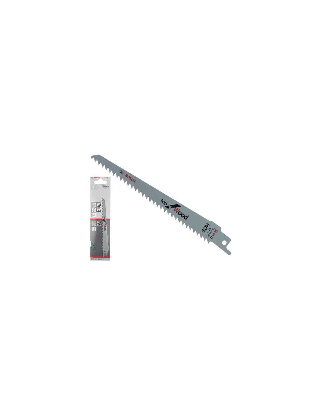 Lame Bosch S 644 D sono lame speciali per seghe a gattuccio, ideali per tagli dal pieno su legno da costruzione, pareti in legno, truciolato, MDF, compensato e materiali elastici fino a 100 mm di spessore. Confezione da 5 pezzi.