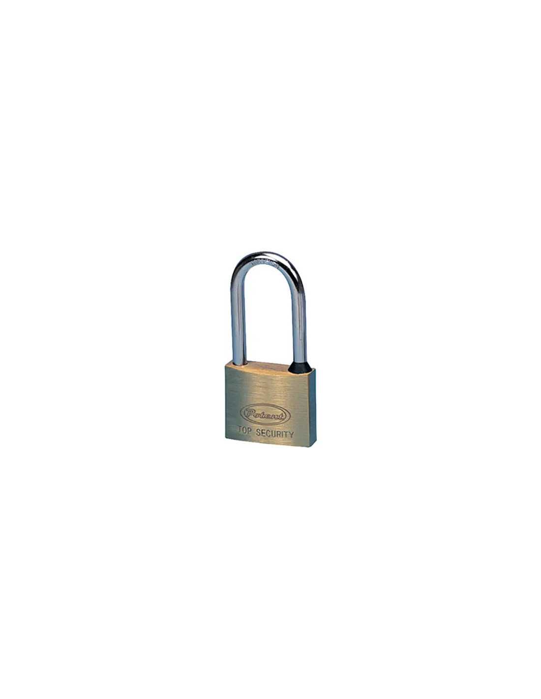 LUCCHETTO ARCO MEDIO 2700 POTENT è realizzato in ottone massiccio lucido, con arco in acciaio cementato e cromato. Dotato di doppia ritenuta e rotazione di 360°, guarnizione tenuta acqua e molla dell’arco inossidabile. I pistoncini di combinazione sono in ottone, con molle in acciaio. La chiave viene richiamata automaticamente in posizione di estrazione, che può avvenire a lucchetto aperto o chiuso. Fornito con 2 chiavi piatte.