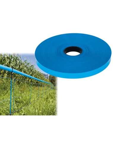 Nastri segnaletici blu per elettrorecinzioni, ideali come deterrente per animali selvatici e per aumentare la visibilità della recinzione.