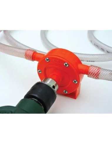 POMPA TRAVASO X TRAPANO ECO è un dispositivo autopescante fino a 4 metri di profondità, dotato di perno di applicazione da Mm. 8 compatibile con tutti i tipi di trapano. Non adatto all'uso alimentare, con portata variabile in base ai giri minuto del trapano utilizzato.