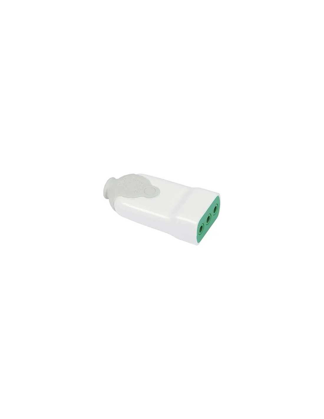 Presa Mobile FME: presa 2P+T con corpo bi-materiale in tecnopolimero e gomma antiscivolo, resistente al calore e agli urti. Dotata di alveoli in ottone schermati e colore bianco. Confezionata in sacchetto appendibile.