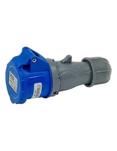 PRESE INDUSTRIALI è una presa mobile 220 Volt, 2P+T 16A ideale per utilizzi industriali. Realizzata in materiale termoplastico autoestinguente con elevata resistenza agli urti e alle basse temperature, è dotata di passacavo in gomma antiusura e offre protezione IP54.