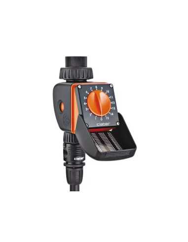 Programmatore automatico a una via con 15 programmi prefissati, dotato di manopola rotativa per l'impostazione dei programmi desiderati. Schermo riassuntivo dei programmi selezionabili sul coperchio, con filtro lavabile e alimentazione a pila alcalina 9 Volt. Parte elettronica stagna e pressione di esercizio da 0,1 a 12 bar.