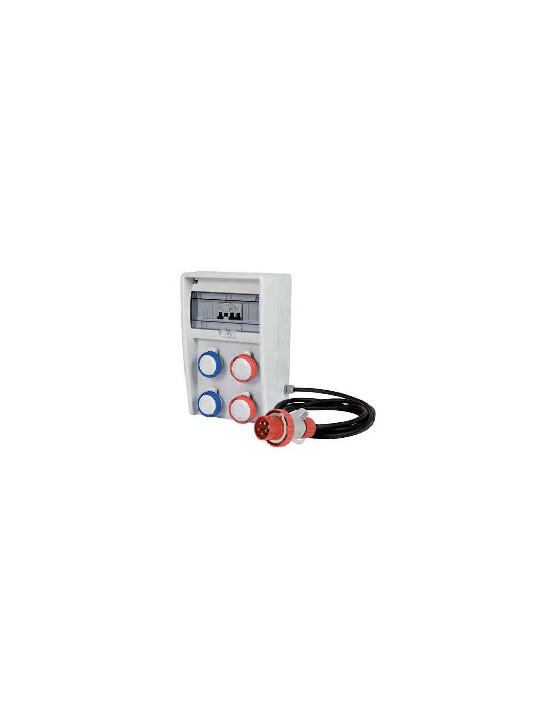 Dotato di cavo da 4 metri con sezione di 5x2,5 mmq, tipo H07RN-F, questo quadro dispone di una spina 3P+N+T 16A 380V IP67, 2 prese 2P+T 16A 220V IP67 e 2 prese 3P+T 16A 380V IP67. Le protezioni includono un interruttore magnetotermico 4P 16A C e un interruttore differenziale 4P 25A 30mA AC.