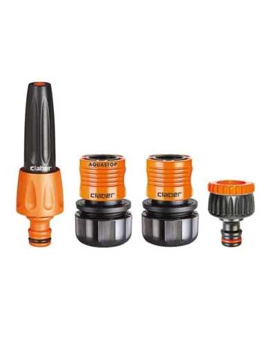 Il set lance Claber Starter Kit 8827 è l'ideale per iniziare a prendersi cura del proprio giardino. Include una presa a rubinetto con riduzione, un raccordo, un raccordo stop e una lanciaspruzzo per garantire un'irrigazione efficace e semplice.