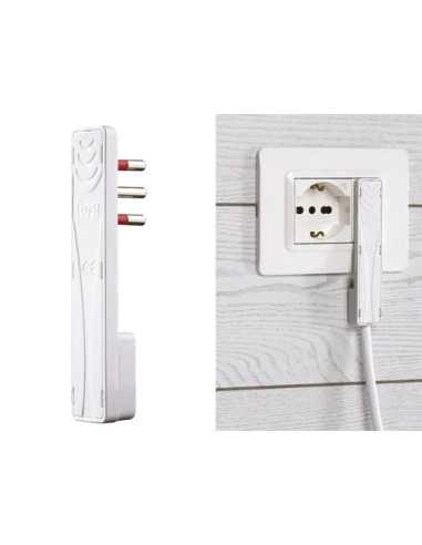 Spina mobile 90° ultra piatta, ideale per ridurre l'ingombro e garantire una connessione sicura. Disponibile in colore bianco per un design discreto e moderno.