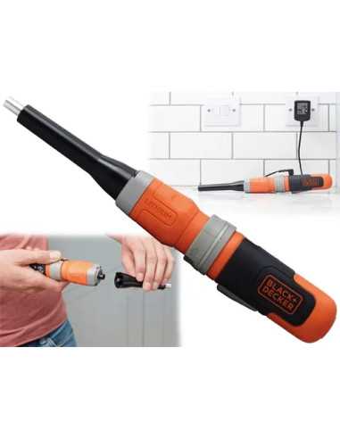 Svitavvita batteria B+D BCF 602 C è un potente utensile con una potenza di 3.6 Volt - 1.5 Ah, dotato di luce Led e prolunga in metallo inseribile/removibile per facilitare l'accesso ai punti più difficili. Dispone inoltre di una pratica funzione tasto blocco manuale per un utilizzo anche come cacciavite manuale. La ricarica avviene in soli 4 ore e include 5 inserti per una maggiore versatilità.