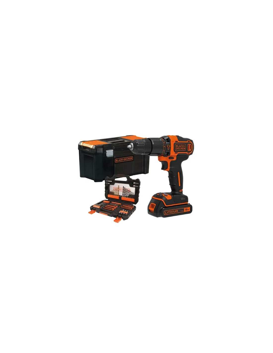 Trapano a batteria B+D BDCHD 18 S1KA con potenza 18 Volt e batteria al Litio. Dotato di 2 velocità variabili, percussione e mandrino autoserrante da 10 mm. Ideale per lavori di foratura e fissaggio, con 10 regolazioni di coppia e torsione fino a 40 Nm. Include una luce Led e una vasta dotazione di accessori in una comoda cassetta portautensili.
