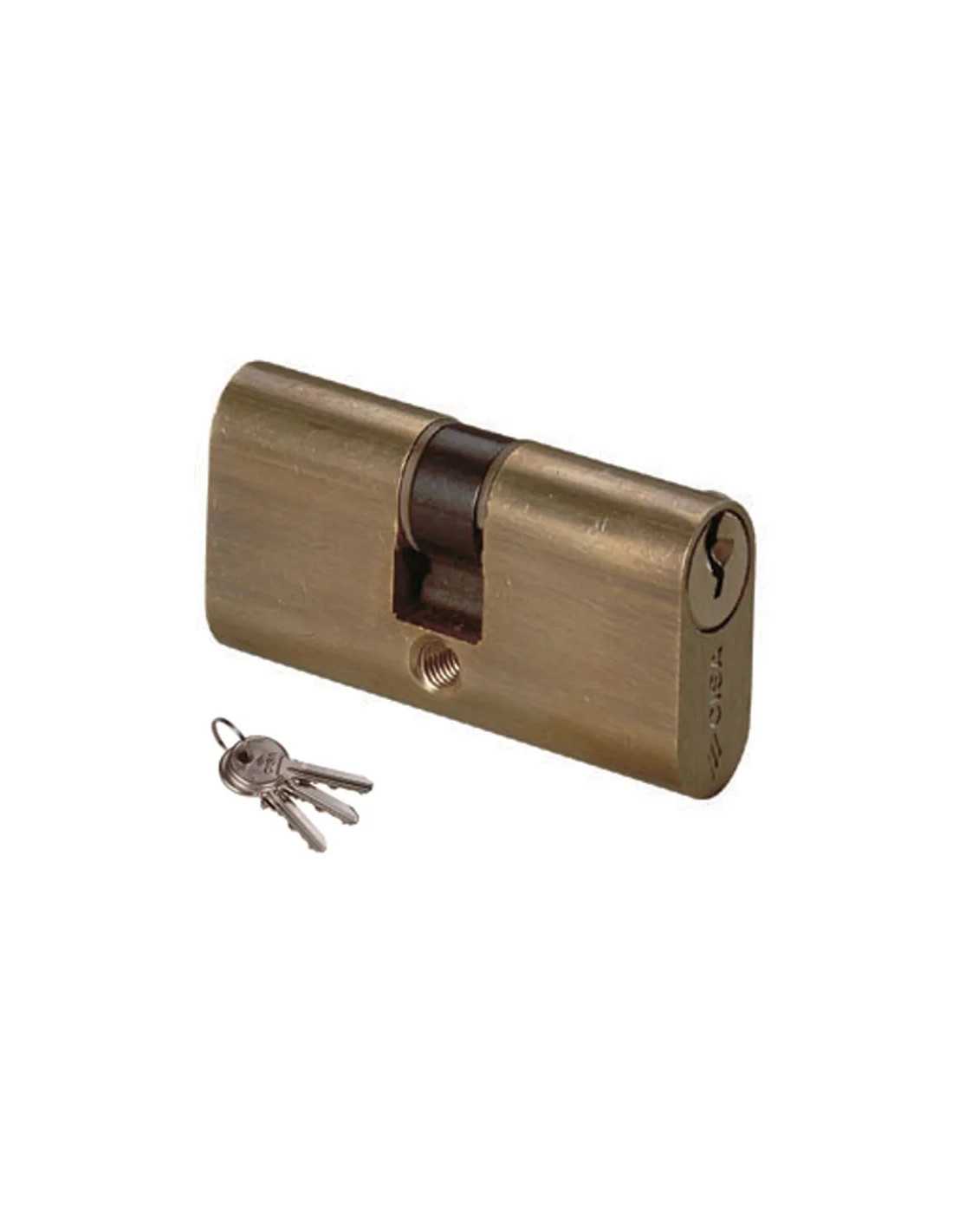 Cilindro CISA Inf. Ovale con finitura in ottone smerigliato e dotato di 3 chiavi universali. Ideale per garantire sicurezza e affidabilità.