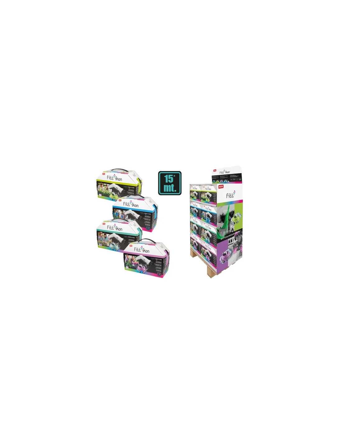 Espositore Tubi irrigazione estensibili Ikon Fitt 15 mt. con pistola. Espositorio colorato con 24 pezzi in Lime, Azzurro, Tiffany e Lavanda. Scopri di più!