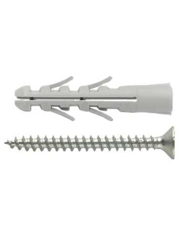 Introducing the TASSELLI BRIXO BS6V, a versatile and high-quality model that will meet all your needs. This model features a complete white zinc-plated steel screw with a flat countersunk head and a pozidrive imprint.