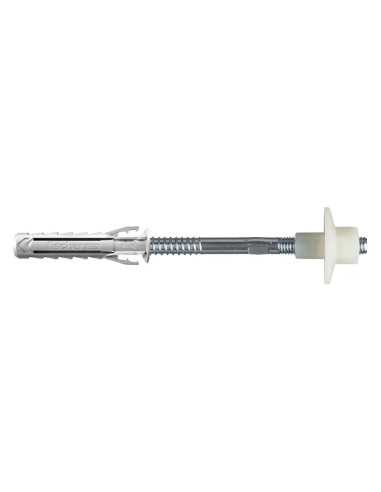 Tassello di fissaggio per lavabi a parete con boccola in nylon, dado in acciaio e vite a doppio filetto. Ideale per un montaggio sicuro e resistente. Confezione da 2 pezzi.