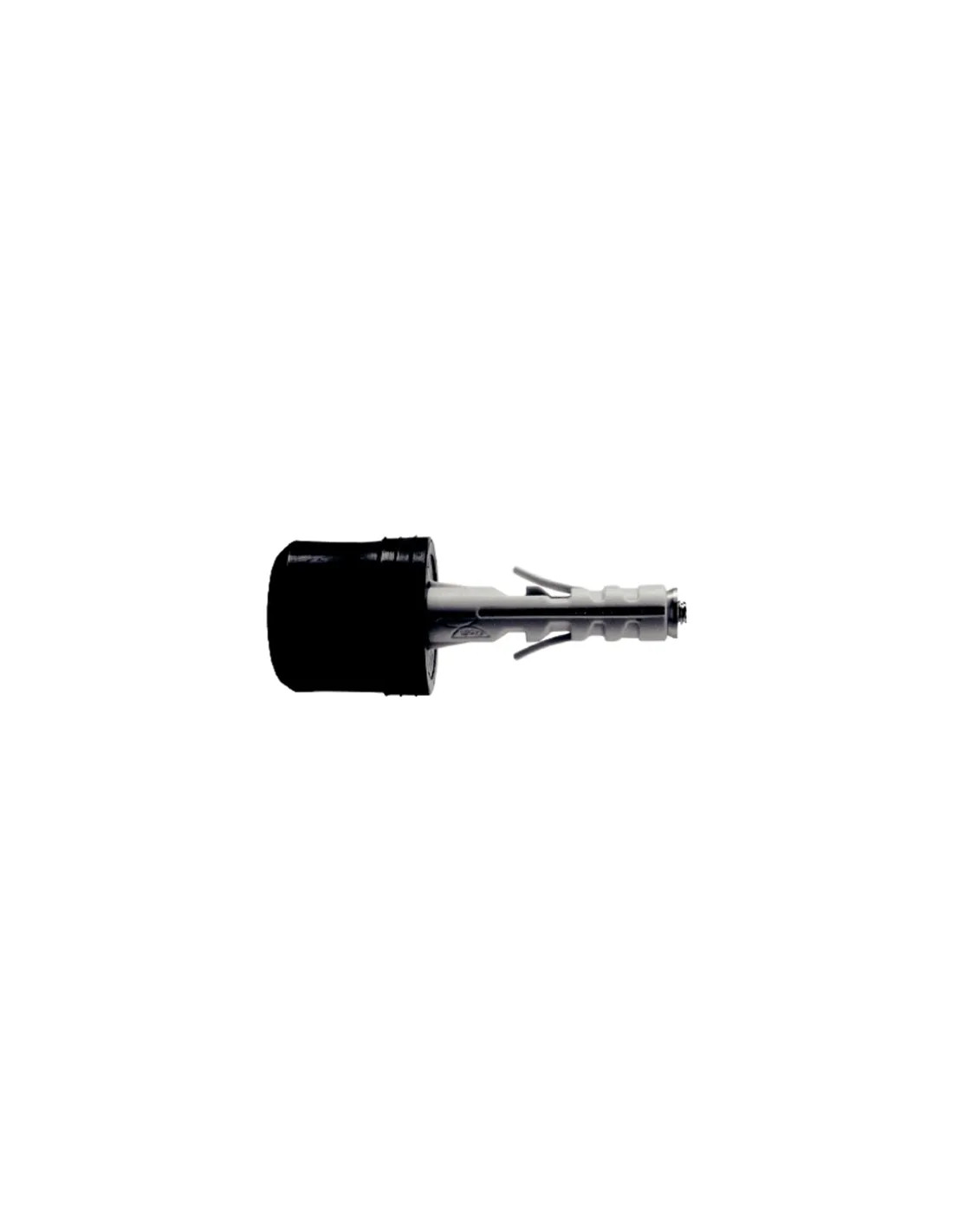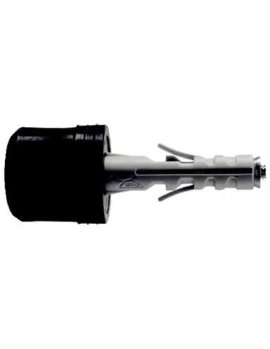 Tassello nylon di colore nero con paracolpo in gomma colorata, ideale per varie applicazioni.