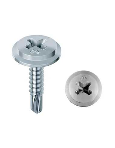 Le viti autoperforanti FFLL sono l'ideale per un'ampia gamma di applicazioni grazie alla loro finitura zincata bianca resistente e alla punta perforante che facilita l'installazione. La testa a Fungo Flangiata Larga con intaglio a croce garantisce una stabilità ottimale durante il fissaggio di canaline elettriche, barre omega, pannelli sottili in legno o plastica su strutture metalliche, intelaiature di contropareti in cartongesso, carpenteria leggera e prefabbricati in lamiera.