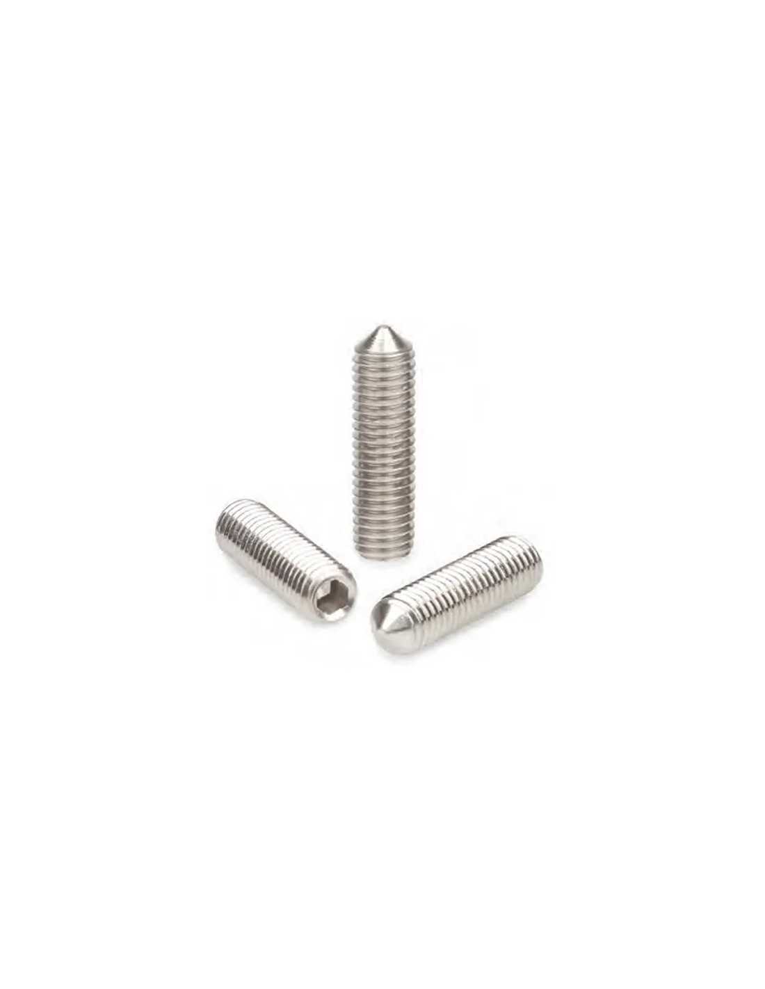 Viti grani senza testa in acciaio inossidabile di alta qualità, ideali per fissaggi resistenti e duraturi. Con cava esagonale e punta conica per una maggiore precisione nell'applicazione.