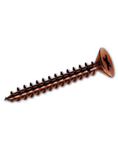 Viti Panel TP Bronzate sono viti universali con testa cava croce, ideali per l'avvitamento senza preforo su pannelli truciolari e legni naturali duri e teneri. Con trattamento galvanico di bronzatura e lubrificazione Lubex.
