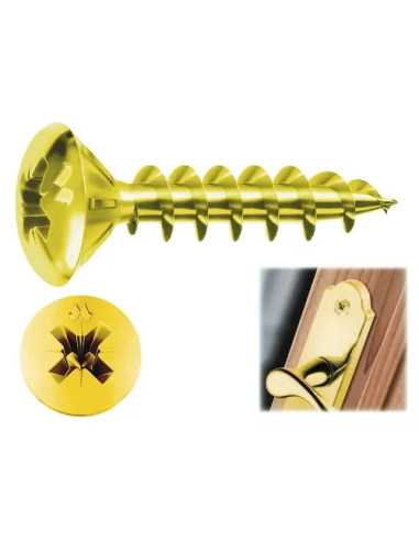 Viti Mustad Panel-Vit ottonate TSC-FR Testa S/Calotta, ideali per il fissaggio di maniglie ed altri elementi di ferramenta grazie al profilo leggermente arrotondato della testa.