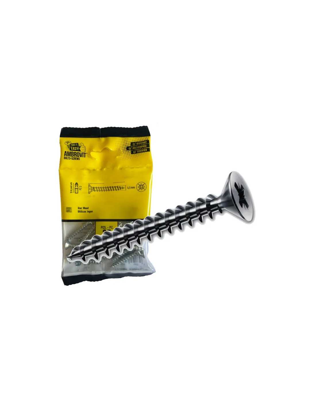 Le viti truciolare TP del marchio AMBROVIT sono un prodotto versatile e affidabile, adatto per una vasta gamma di utilizzi. Realizzate in acciaio temperato, queste viti sono progettate per essere utilizzate su legni naturali, pannelli truciolari, compensati, materie plastiche, tasselli e lamiere sottili.